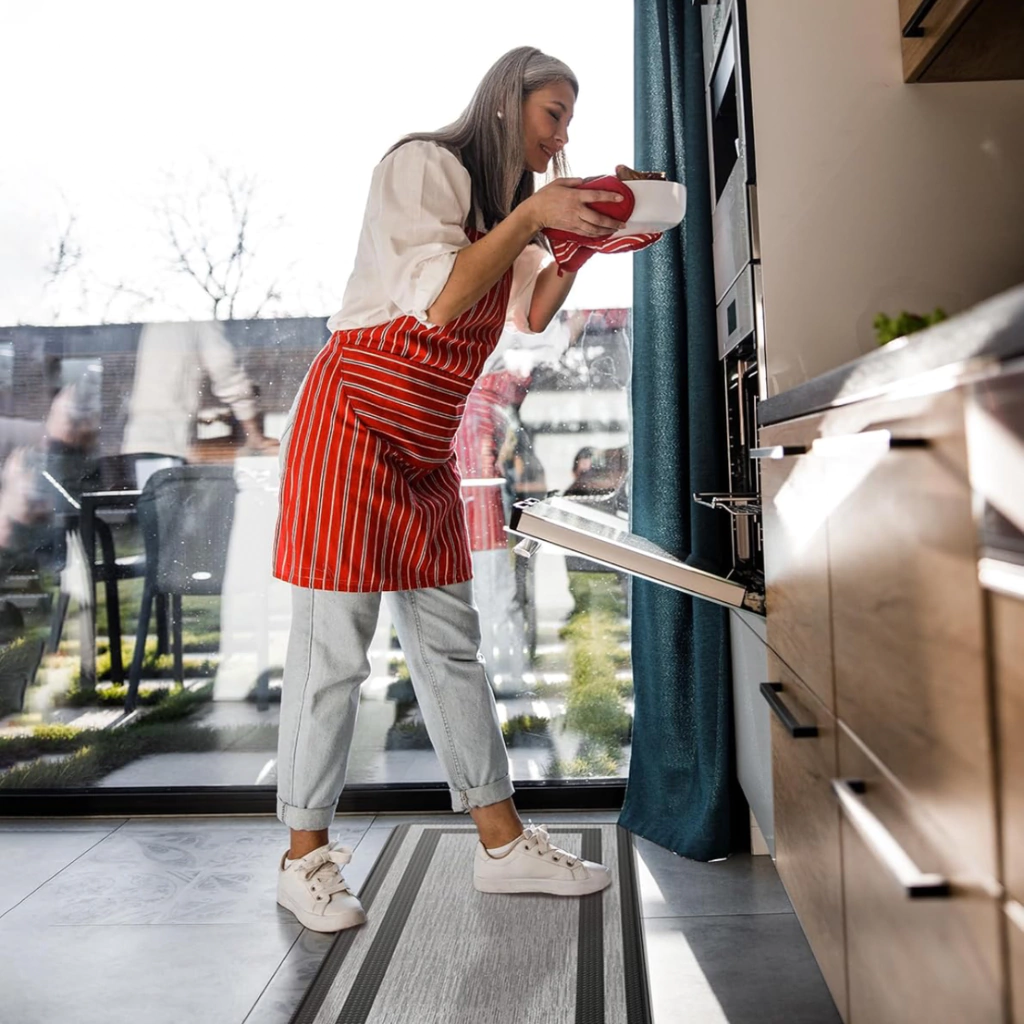 ALFOMBRA 45*75 CM DE COCINA GRIS CON BORDES NEGROS