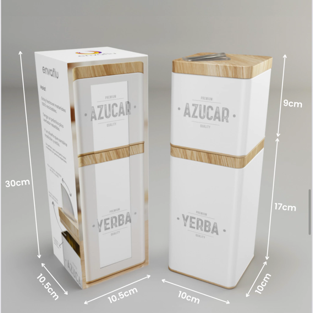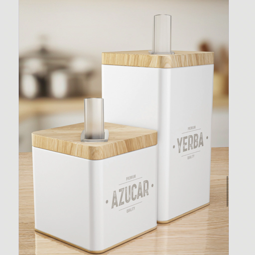 COMBO MATERO SELLO - BLANCO Pico plástico rebatible. Azucarera: Alto: 9.00cm - Lados 10cm Capacidad: 400gr Yerbera: Alto: 17.00cm - Lados: 10cm Capacidad: 600gr