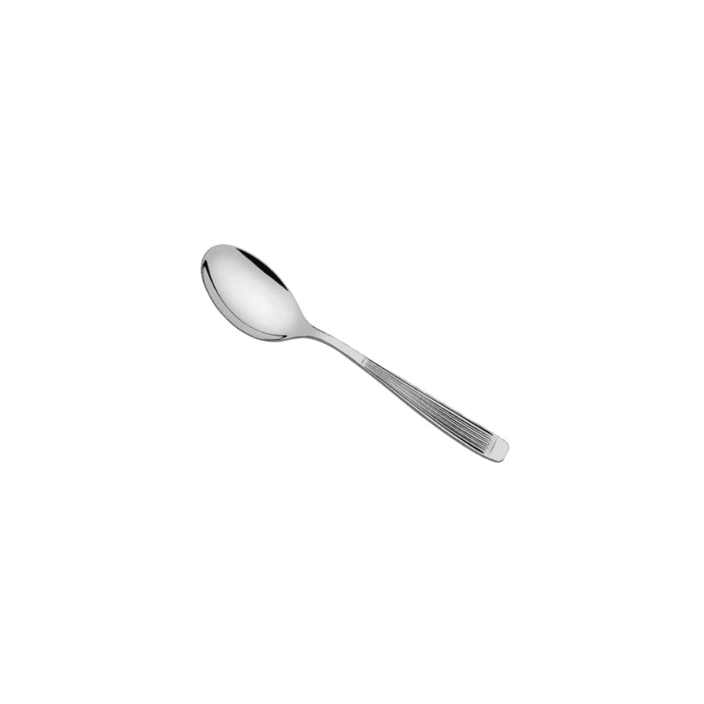 Cuchara de café Tramontina Athenas Monopieza de metal templado, con textura rayada en el mango. Largo 11 cm Material: Acero Inoxidable