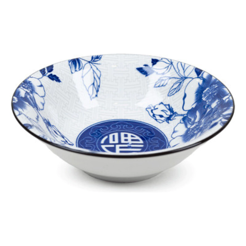 Ensaladera redonda blanca con flores y letras chinas azul Medida: 25 x 8 cm Material: Cerámica