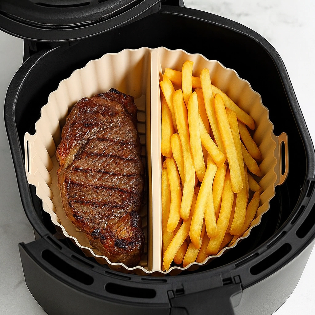 Molde de silicona con 2 divisiones Medida total: 14 cm base, 19 cm boca superior y 5 cm altura Apto microondas, freidoras de aire y horno