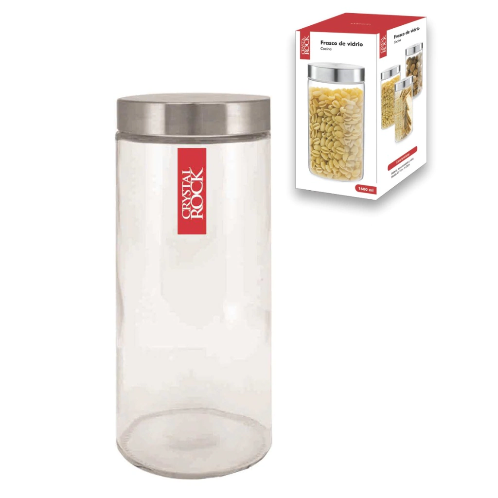 TARRO VIDRIO 22 CM TAPA DE ACERO